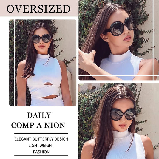 Polarized Sunglasses for Women Large Oval Thick Frame Sun Glasses Shades UV Protection (Gradient Brown)